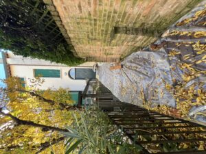 che affaccia sui tetti, ripostiglio adibito a bagno ed armadi su misura.