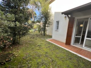 P. T. – Giardino, portico con camino, ingresso, soggiorno con angolo cottura